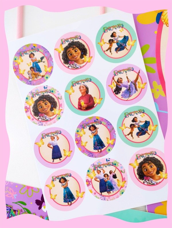 STICKERS: Plancha para recortar x 12 unidades de 4,5cm de diámetro.