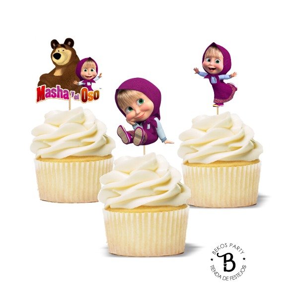 Topper cupcake silueta x 6 Masha y el Oso