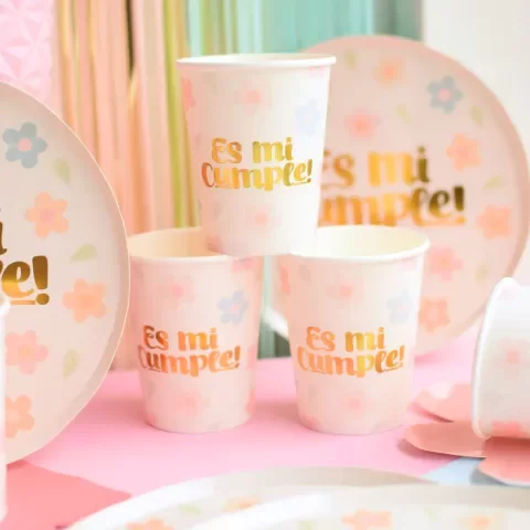 Vaso "Mi Cumple" flores x 6