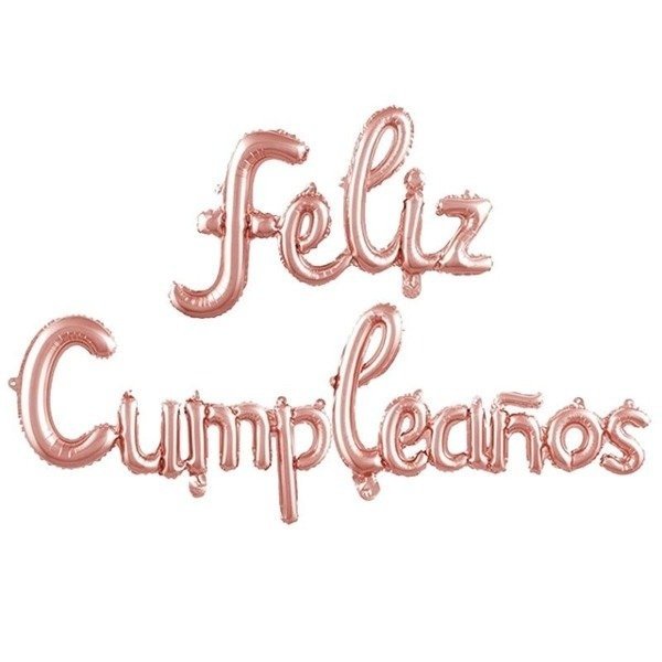 Globo "Feliz Cumpleaños" cursiva rosa gold