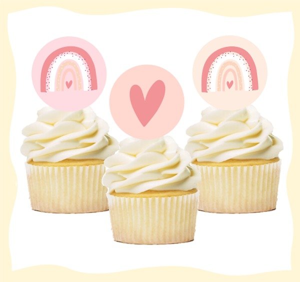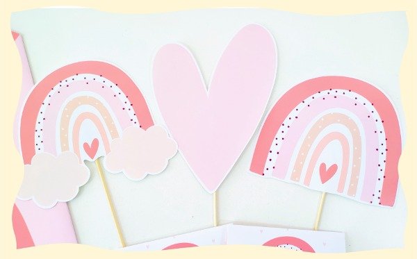 TOPPER CUPCAKES: Pack x 10 topper surtidos. Imagen mide 5cm aprox, 10cm largo total.