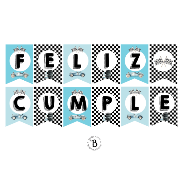 Banderin "Feliz Cumple" Auto Vintage Blue