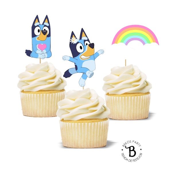 Topper cupcake silueta x 6 Bluey rosa