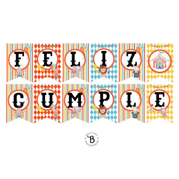 BANDERIN FELIZ CUMPLE: Mide 2mts de largo aprox. Incluye 12 letras.