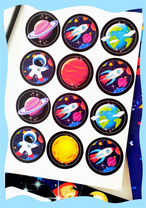 STICKERS: Plancha para recortar x 12 unidades de 4,5cm de diámetro.