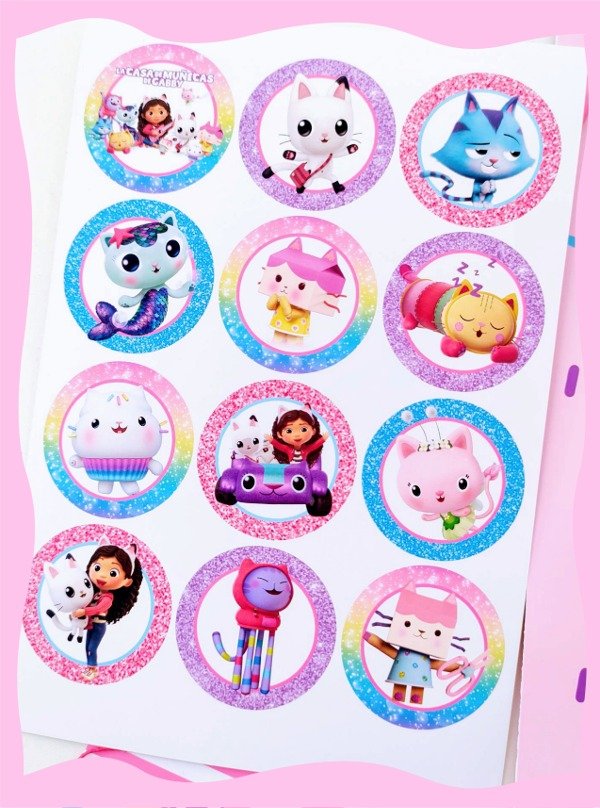 STICKERS: Plancha para recortar x 12 unidades de 4,5cm de diámetro.