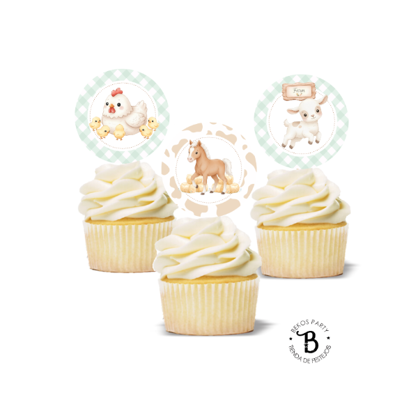Topper Cupcake redondo x 10 Granja Sweet
