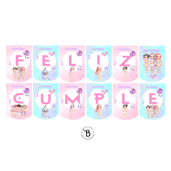 Banderin "Feliz Cumple" Huntrix- Guerreras del Kpop mod.2