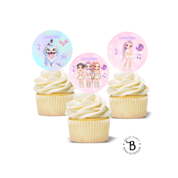 Topper Cupcake redondo x 10 Huntrix- Guerreras del Kpop mod. 2