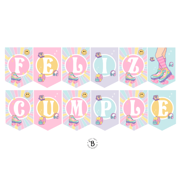 BANDERIN FELIZ CUMPLE: Mide 2mts de largo aprox. Incluye 12 letras.