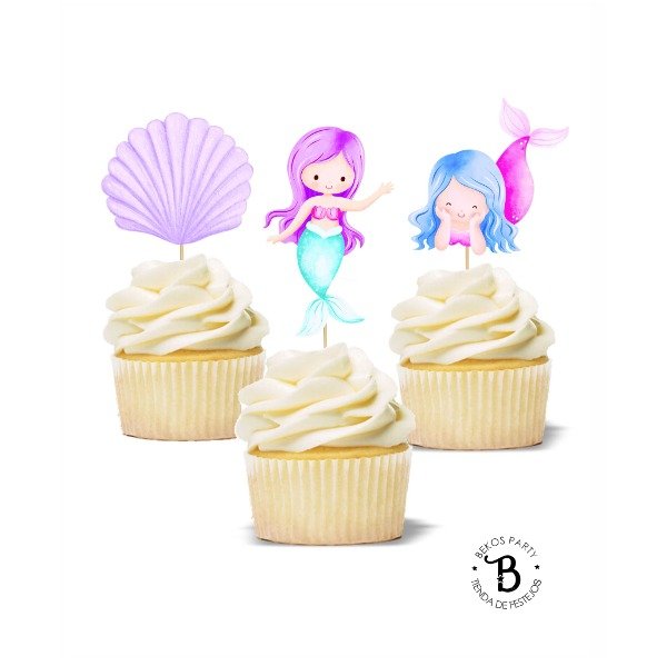 Topper cupcake silueta x 6 Sirenas