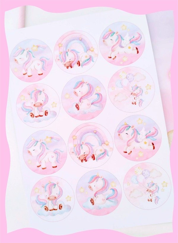 STICKERS: Plancha para recortar x 12 unidades de 4,5cm de diámetro.