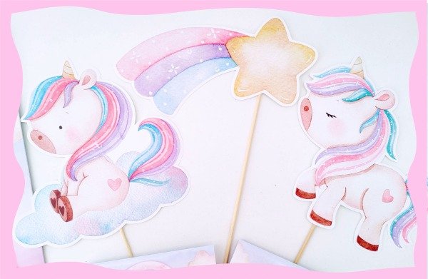 TOPPER CUPCAKES: Pack x 10 topper surtidos. Imagen mide 5cm aprox, 10cm largo total.